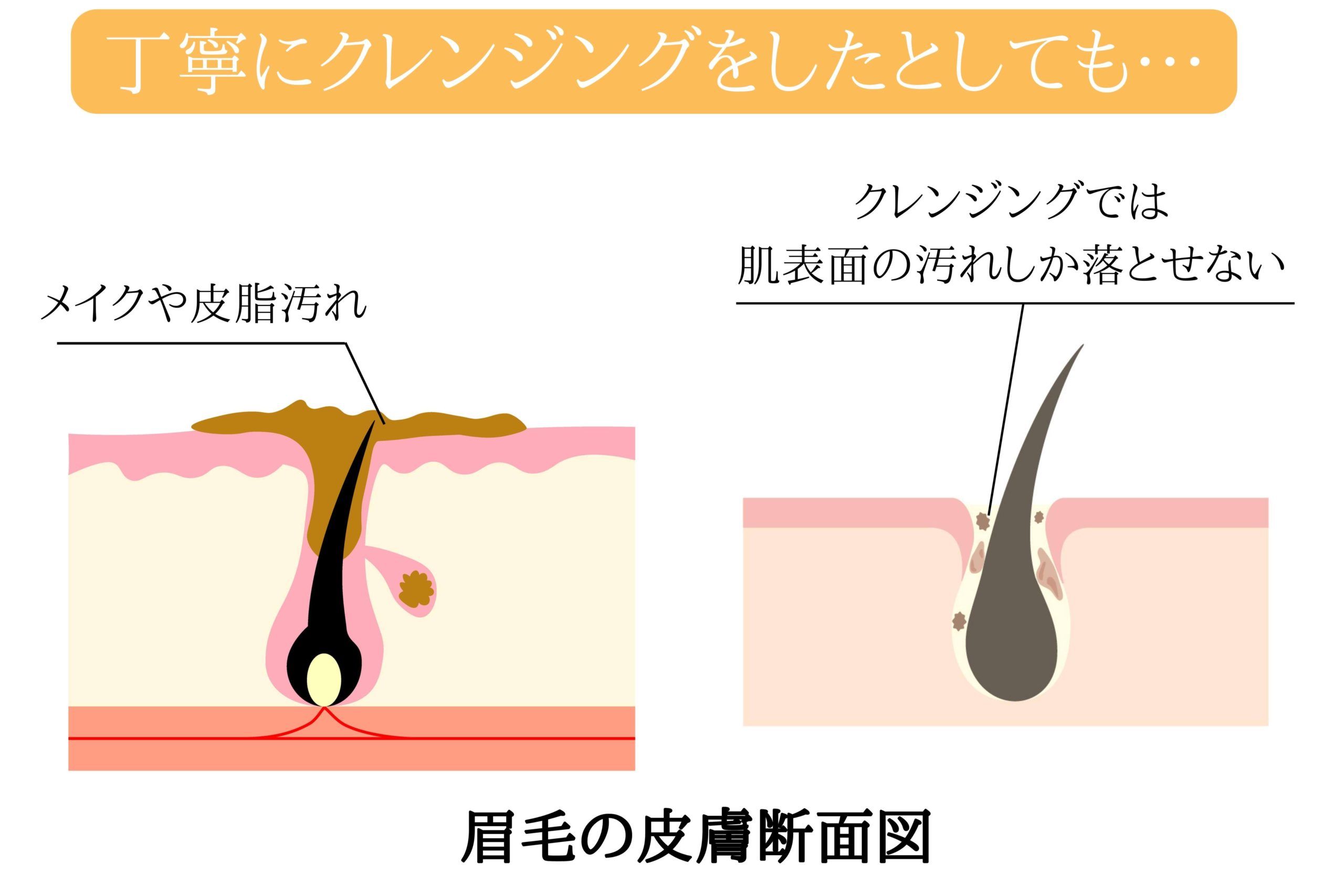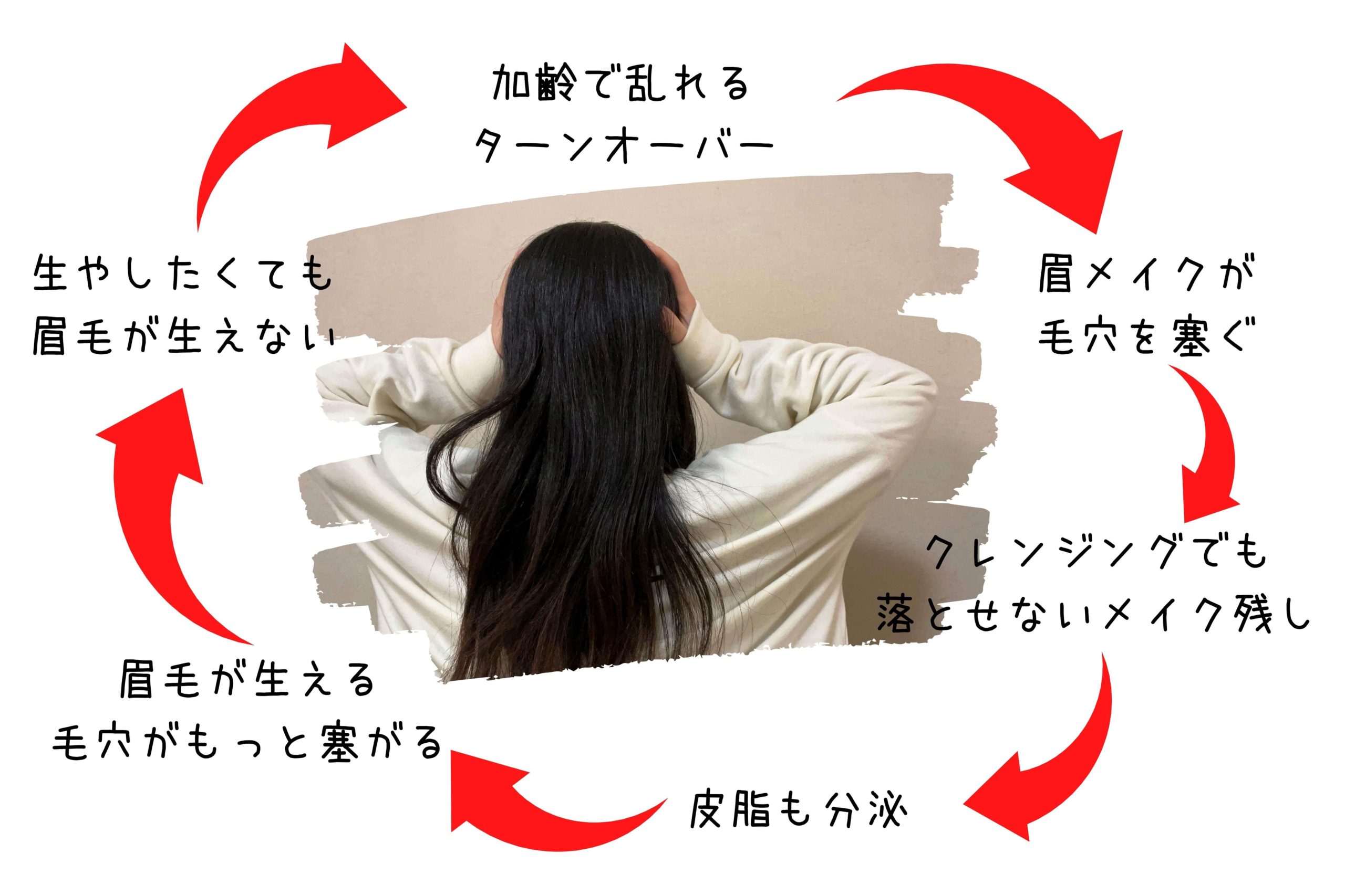 さらに不完全なクレンジングで眉毛の毛穴が塞がり…